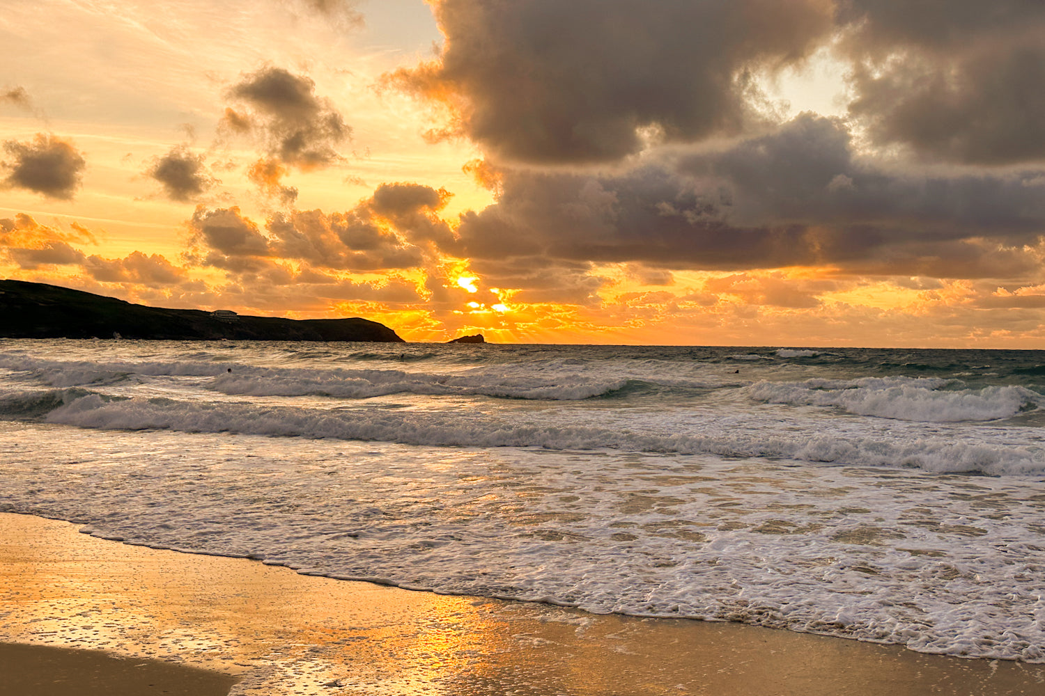6 x 4 photograph of Fistral beach at sunset on a February winter evening.